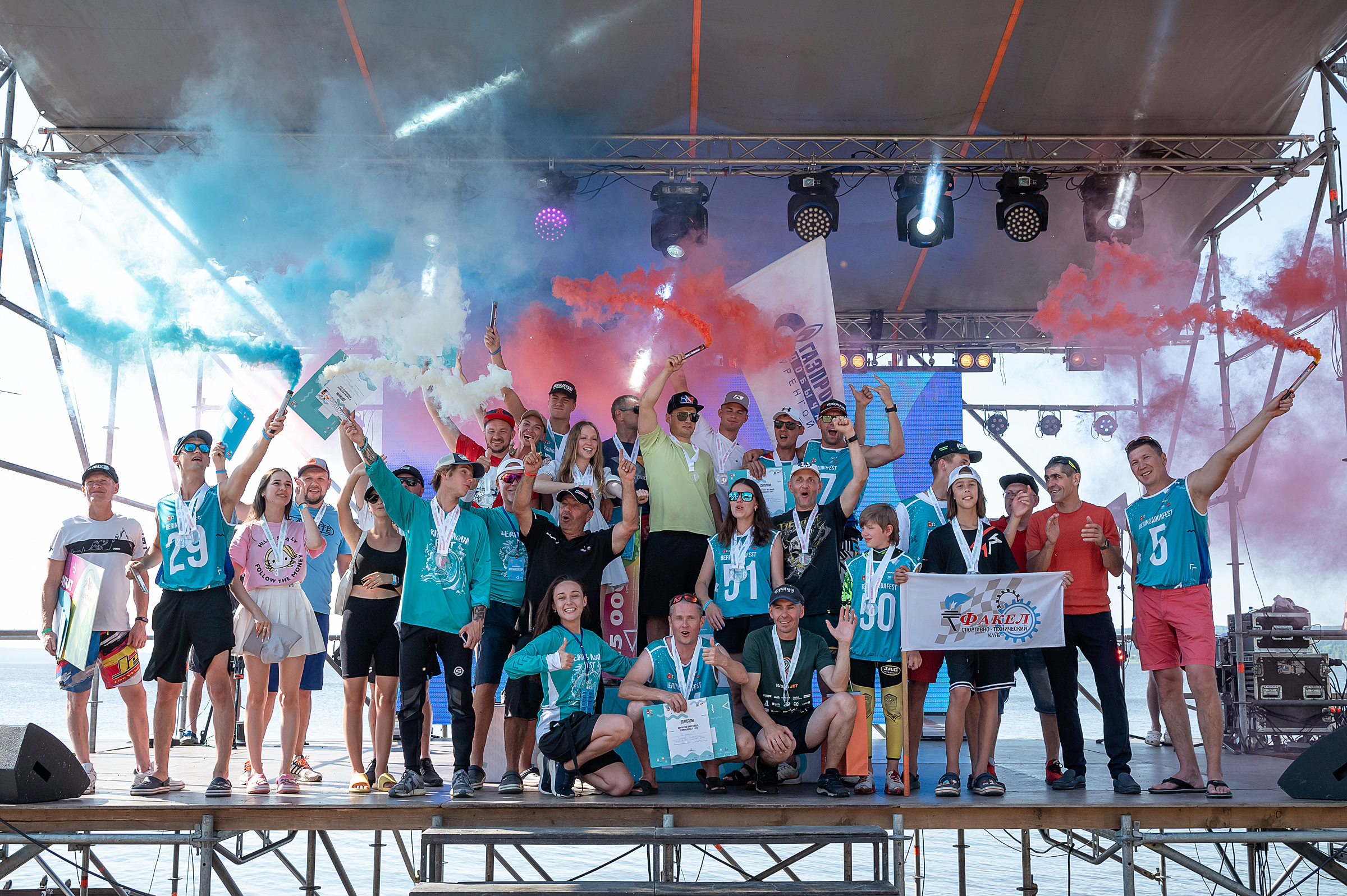 Самыми зрелищными стали дисциплины вотеркросс – катание на снегоходах по воде и слалом, когда параллельно с аквабайком в небе летал вертолет, который в дальнейшем приземлялся прямо на волнорез на берегу акватории. Спортивная программа дополнилась турниром по пляжному волейболу среди любителей, собравшим сотни болельщиков.
