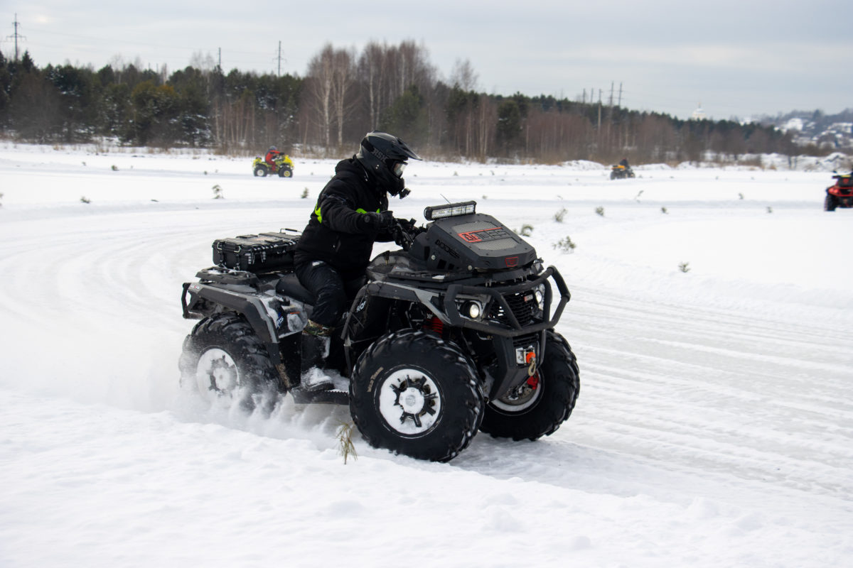 21 февраля квадроциклисты собрались у мотосалона Pulsar, откуда стартовали и совершили пробег 60 км на технике по пересеченной местности до загородного клуба «Чистые пруды».